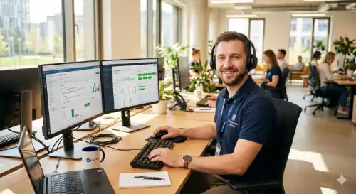Rezolvăm peste 90% din tichetele de suport în câteva minute, de la distanță. Indiferent unde se află angajații tăi în România, echipa noastră de helpdesk preia ecranul și rezolvă blocajele software instantaneu.